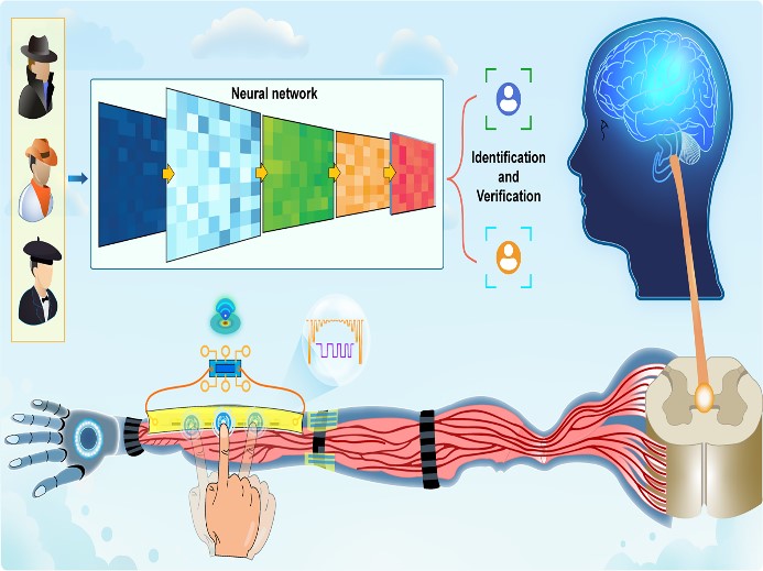 本文提出并证明了一种仅需两个电极就可以用于多点识别人机交互系统的一体化触摸定位传感器。该触摸定位传感器采用了一种被称为梯度电阻元件的新型功能结构,可以对多种机械触摸进行广泛地检测与位置识别,为人工智能辅助的人机交互提供多种可能性和实用性。图形化的功能敏感材料可以转化为用户自定义的有趣而生动的多点触摸定位传感器,器件具有零串扰、长期耐用、响应快、稳定性高和出色的时空动态分辨等特性。凭借其独特的多点触摸传感结构和响应特性,所设计的触摸定位传感器可有效地将一个或多个动态机械触摸转换为设定的指令,研究人员展示了该触摸定位传感器可用于钢琴和旋演奏、无人机操控、人工智能辅助的个人身份识别等。其中,基于触摸定位传感器和深度学习算法结合的增强用户验证系统,能够识别、学习与记忆人机交互过程中用户的固有行为特征,为基于触摸特征识别的个性化人物识别提供基础。这项工作不仅展示了推动触摸定位传感器领域突破性发展的新策略,而且提供了一种科学和技术上可行的构建高效、多功能触摸定位传感器的思维方式,这些探索将为虚拟现实、增强现实以及元宇宙的交互应用发展提供基础。