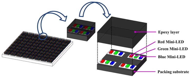 文章对倒装芯片型mini-LED的四合一IMD中相邻像素之间的光串扰进行比较,研究了mini-LED电流拥挤和环氧树脂封装对相邻像素间光串扰的影响。此外,通过捕获像素上表面发射光的角分布情况,可以获得关于光学串扰的全面信息。