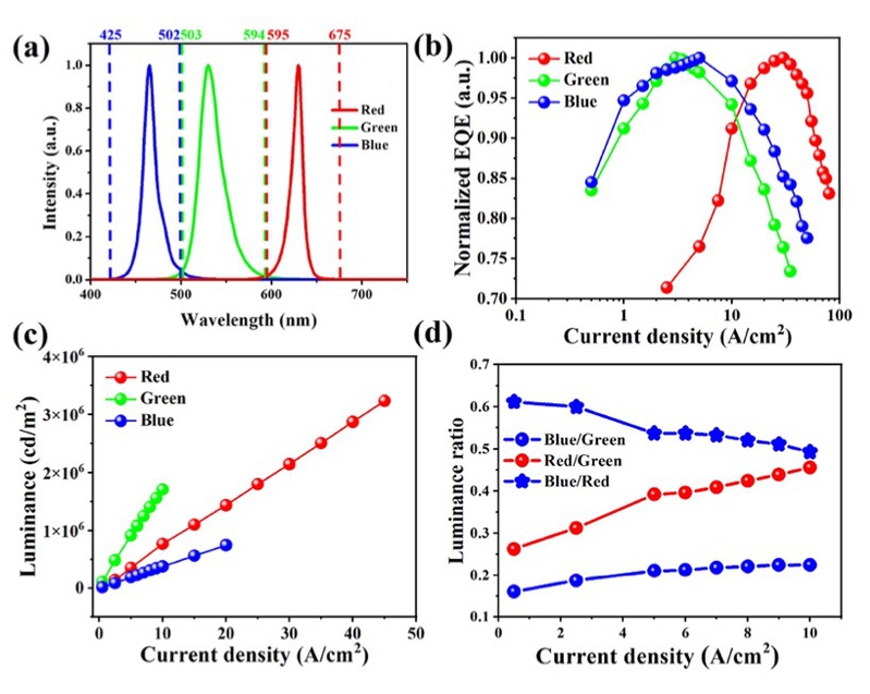 该工作通过显微高光谱成像技术,对红色、绿色和蓝色Mini-LED的亮度衰减以及Mini-LED阵列在不同工作电流下的光学串扰进行了实验定量研究。定义了单个Mini-LED子像素的亮度衰减评估指标和三个彩色RGB的Mini-LED之间的亮度影响,以定量描述阵列中LED子像素之间的光学串扰现象。还比较了发射峰值分别为465纳米和529纳米的不同尺寸蓝色和绿色Mini-LED的亮度衰减过程。此外,基于LightTools软件的光学模拟,获得了不同芯片尺寸的蓝色和绿色Mini-LED的最小像素间距,从而减少了光学串扰现象。最后认为这项研究可以为具有适当像素大小和像素间距的Mini-LED显示器选择合适的工作条件提供有用的指导,以减少Mini-LED显示中的光学和颜色串扰。(编辑:郭自泉)